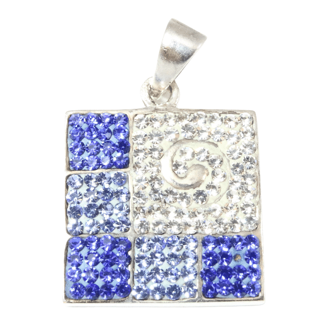 A medál ezüstből készült. Négyzet alakú és színes cirkonokkal díszített. Ez a sterling ezüst medál széles korosztály számára készült, az érett lányoktól az érett nőkig. Ez a medálmodell mindennapi viseletre és ünnepi alkalmakra egyaránt alkalmas. A medál kisebb méretű, a megfelelő lánccal gyönyörűen díszít bármilyen nyakláncot.